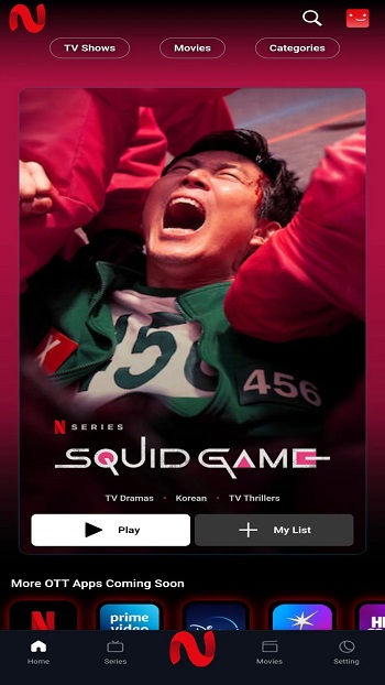 Once inside the app, you can explore content through several methods. The home screen showcases popular or recommended titles. Category sections let you browse by genre—comedy, action, romance, horror, and others.